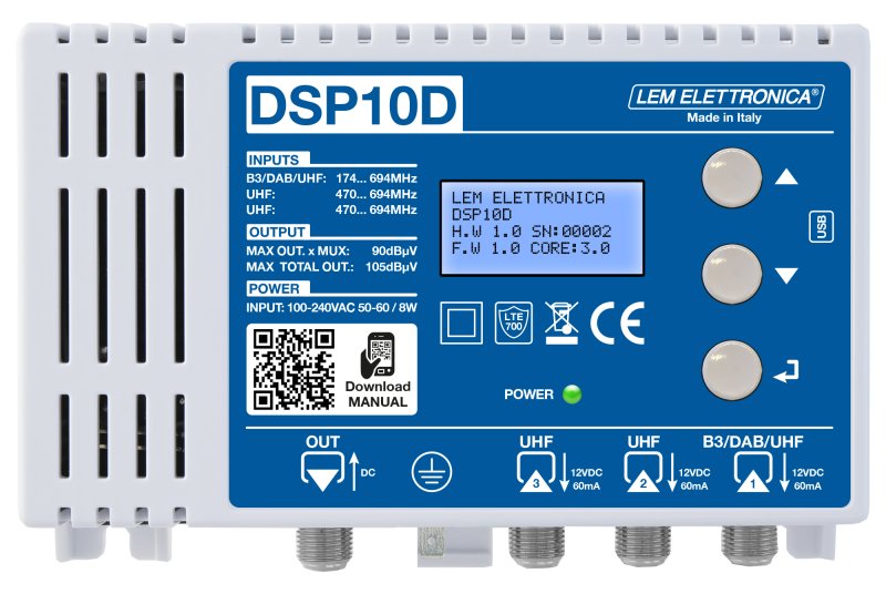 La centralina integra un alimentatore switching ad alta efficienza e basso consumo energetico e supporta anche l’alimentazione remota tramite il cavo coassiale di uscita.