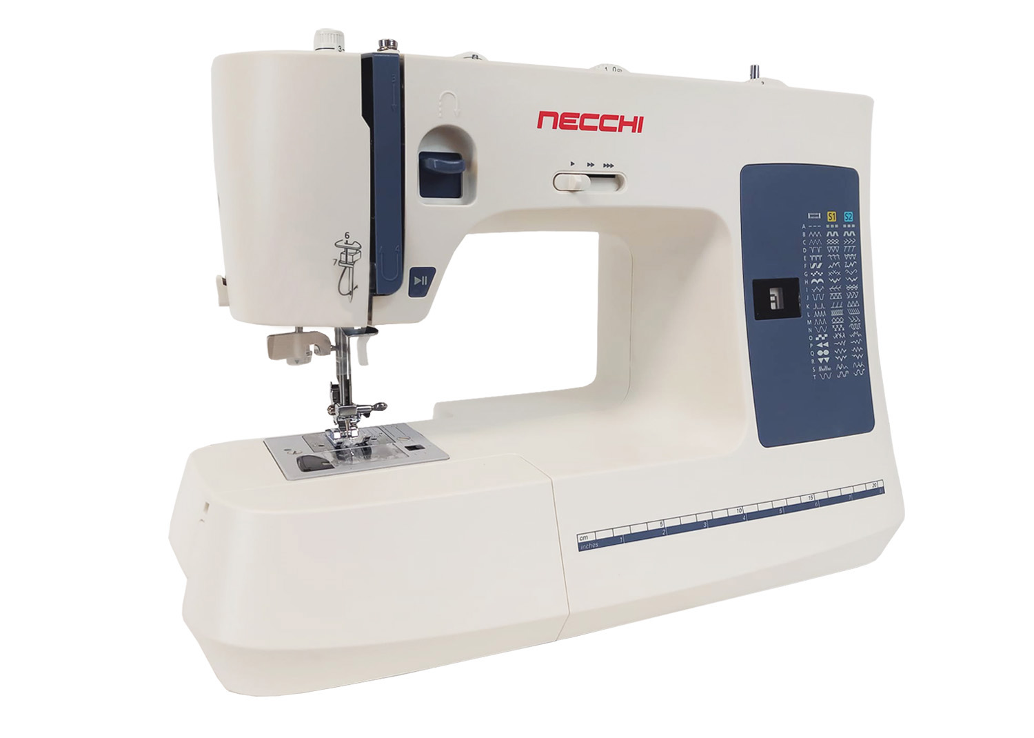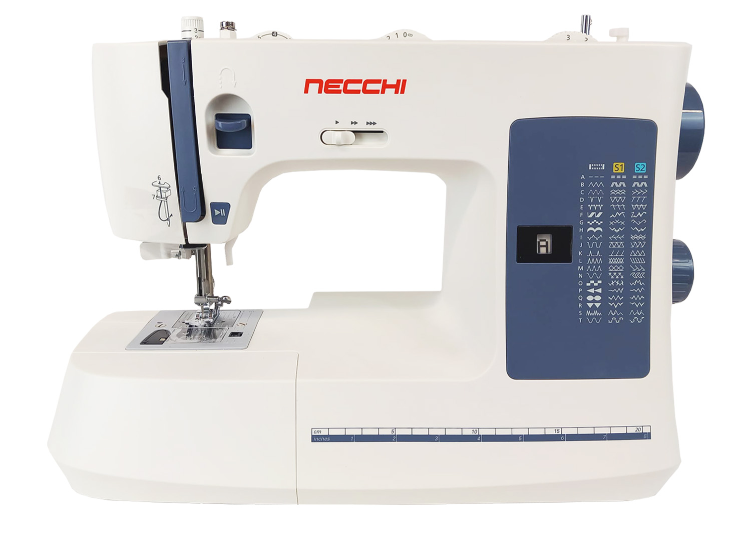 Necchi NC-59QD è caratterizzata da facilità d’uso con comode funzioni quali regolazione velocità di cucitura, pulsante start/stop, ago alto/basso attivabile attraverso il pedale di comando. E’ dotata di un ampio e luminoso spazio di lavoro di 18 cm che soddisfa le esigenze della principiante fino all’esperta più esigente. Migliora la tua esperienza di cucito con funzioni elettroniche a portata di mano.