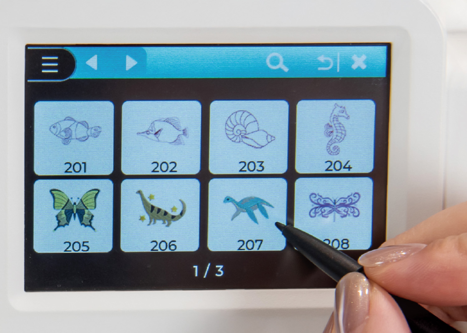 Grazie alla connettività WiFi e all’App Artist Tool, puoi gestire i tuoi ricami direttamente dal tuo smartphone, mentre il display LCD a colori da 3,5” e la penna touch ti consentono un controllo preciso e intuitivo. La NE210 include 392 punti di cucito, 3 alfabeti e oltre 100 ricami preinstallati, compresi i raffinati disegni di Sweet Bio Design.