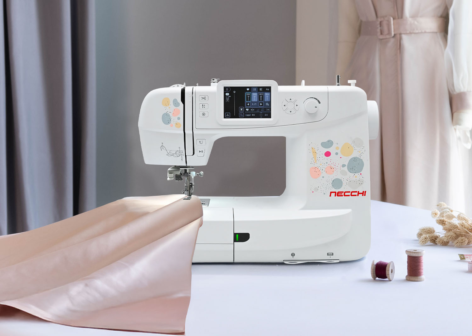 La Necchi NE210 è la macchina perfetta per chi desidera unire cucito e ricamo con tecnologia avanzata e facilità d’uso. Disegnata in collaborazione con Eleonora Galvagno, questa macchina unisce estetica e funzionalità, offrendo strumenti innovativi per realizzare creazioni uniche e personalizzate.