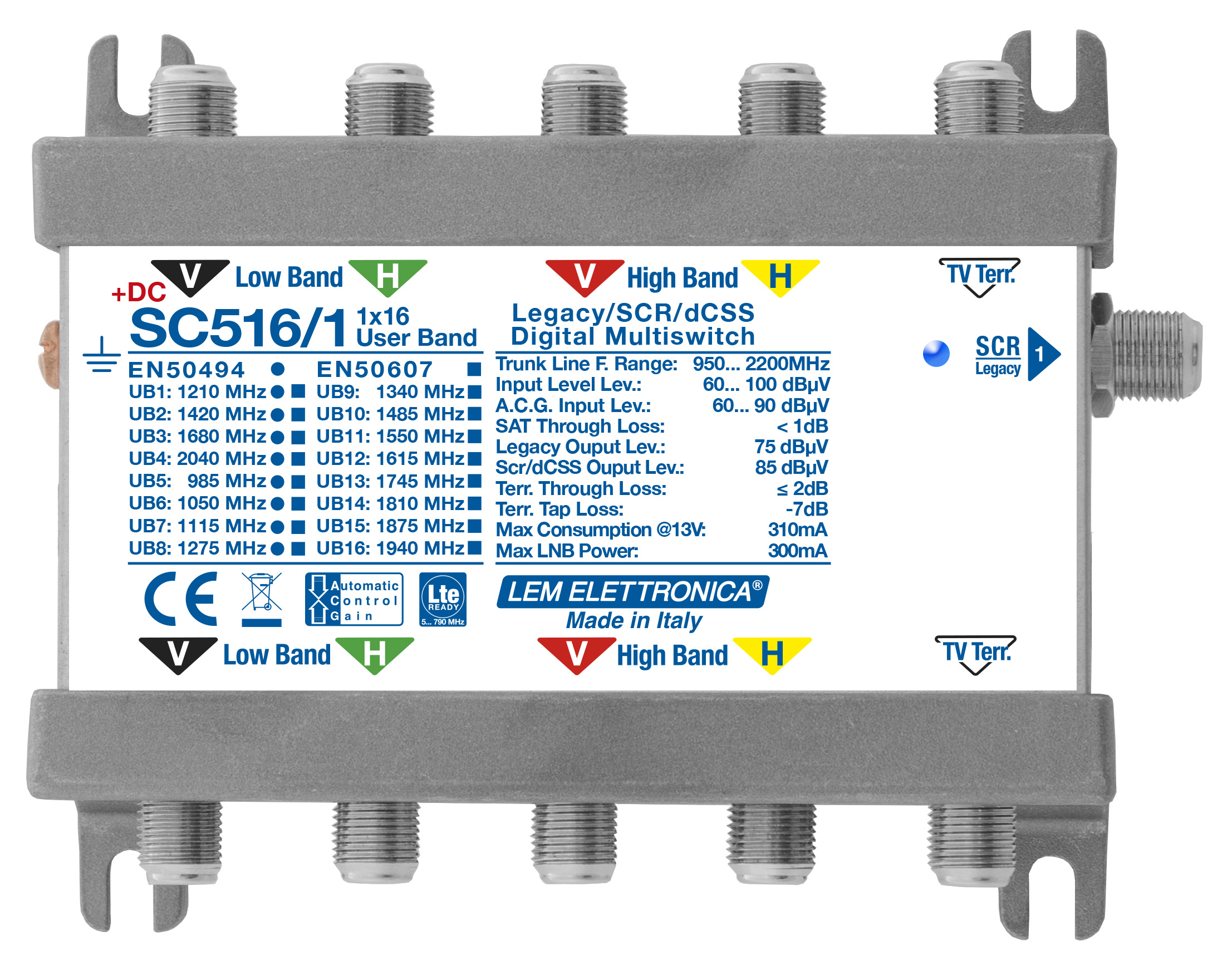 Riconoscono automaticamente se i decoder collegati sono di tipo Legacy – SCR – dCSS. Sono idonei ad essere utilizzati in impianti in cui è richiesta la tele-alimentazione dell’LNB da decoder.