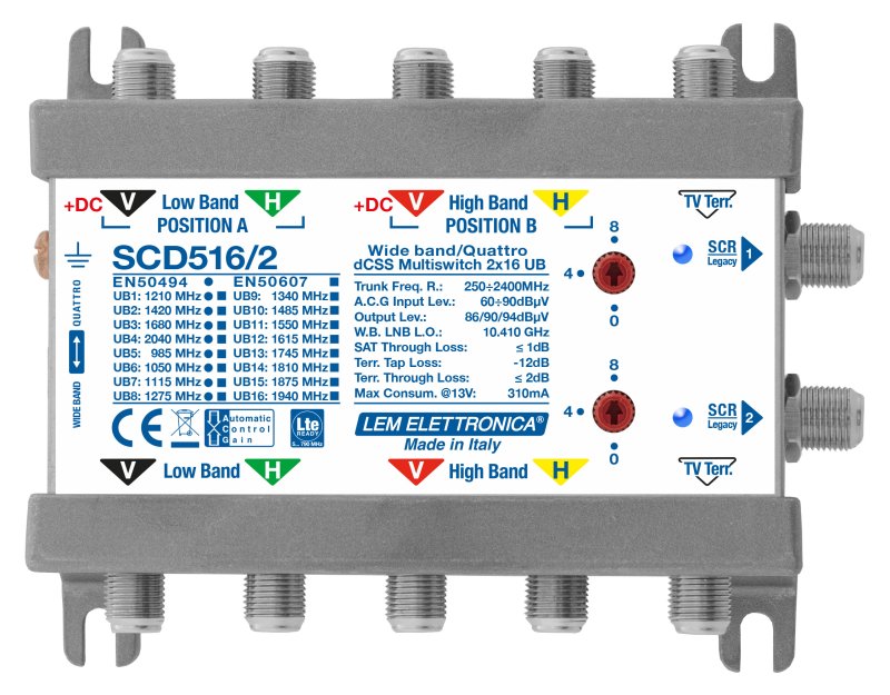 Questi Multiswitch riconoscono automaticamente se i decoder collegati sono di tipo Legacy – SCR – dCSS. Sono idonei ad essere utilizzati in impianti in cui è richiesta la tele-alimentazione dell’LNB da decoder.